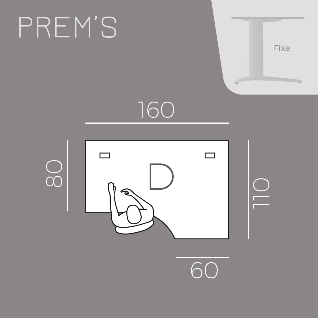 Bureau compact 90° de L160 cm - P80cm. Structure poutre. PREM’S